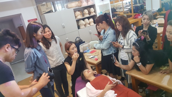 *2018년 06월 대만 학생 20명 창신대학교 메이크업 및 아트 메이크업 특강교육 *교수: 우미옥 학과장(메이크업 강의), 김민지 교수(마트메이크업 강의) *매년 창신대학교에서 미용교류 학술 세미나 진행